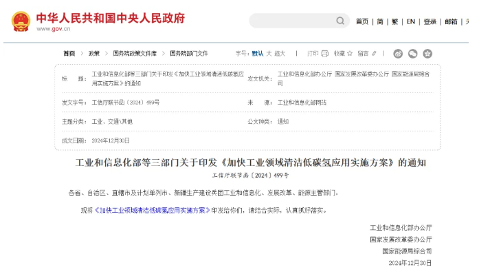 2024年12月30日,工業和信息化部、國家發展改革委、國家能源局三部門發布了《加快工業領域清潔低碳氫應用實施方案》。該《方案》提出,我國將加快氫燃料電池汽車應用。同時,高質量推進燃料電池汽車示范城市群建設,加快車輛推廣和氫能供給體系建設,推動氫燃料電池汽車產業鏈技術、產品迭代開發應用。