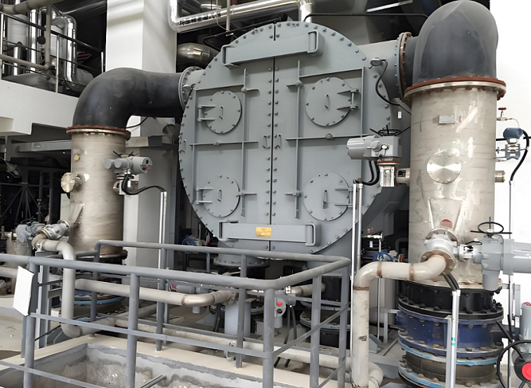 凝汽器的作用:汽輪機做完功的乏蒸汽(低壓、低溫蒸汽)進入凝汽器,被循環冷卻水冷凝成凝結水(給水),重新送回鍋爐加熱。這個過程釋放的潛熱被循環冷卻水帶走。煤電廠為什么需要高真空?降低排汽壓力:凝汽器內保持高真空(絕對壓力遠低于大氣壓,通常在 3-8 kPa abs 或 -95 到 -97 kPa gauge 左右),使得乏蒸汽能在較低的溫度(對應其低壓下的飽和溫度)下凝結。增大蒸汽有效焓降:根據熱力學原理(朗肯循環),汽輪機入口(鍋爐產生的高壓高溫蒸汽)和出口(凝汽器壓力)之間的壓力差越大,蒸汽在汽輪機中膨脹做功的能力就越強,即有效焓降越大,機組熱效率越高。
