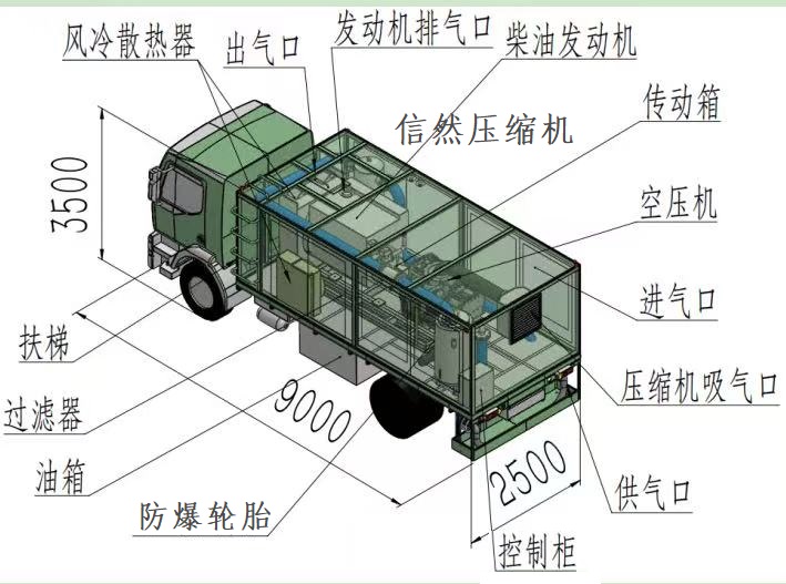 無油雙螺桿雙級壓縮、單臺主機、撬裝車載等,配置全部為國產發動機、自研主機、國產車輛等。
