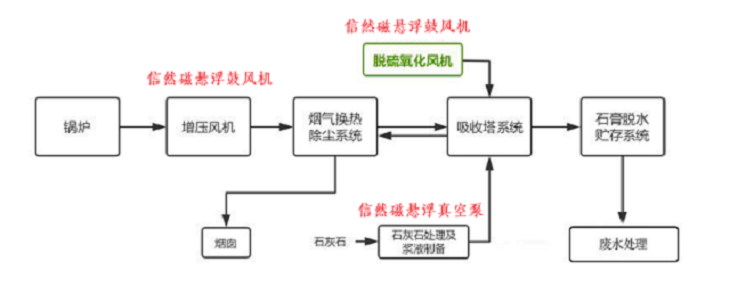 信然磁懸浮風機在電廠脫硫氧化的主要作用是為吸收塔漿液池提供氧氣,促進亞硫酸鈣氧化為硫酸鈣(石膏),確保脫硫效率和石膏結晶質量。