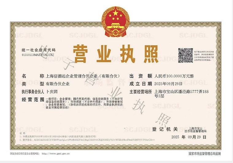 祝賀:上海信德遠企業(yè)管理合伙企業(yè)(有限合伙)成立
